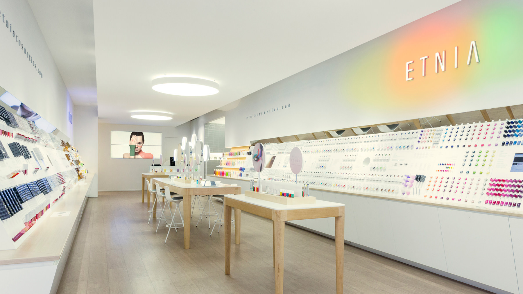 360 design: Shop, furniture and identity design. ETNIA Cosmetics. 2013.