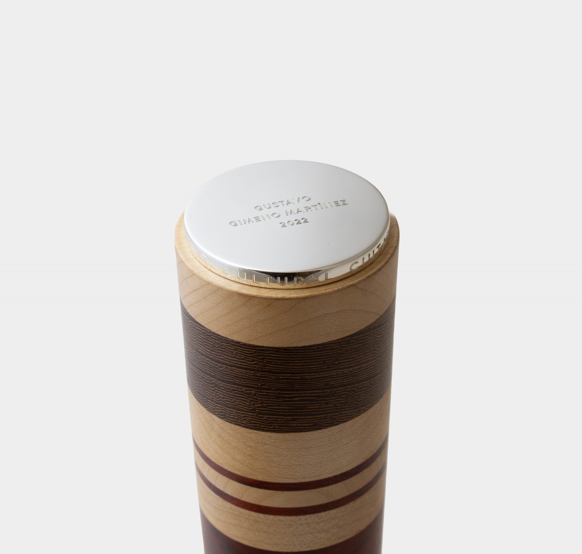 Wood is also deeply rooted in Valencia. The city has a long tradition of furniture makers, cabinetmakers, and turners, as well as a strong history in the trade and distribution of wood from around the world. This heritage also extends to the making of musical instruments such as the dolçaina, so closely associated with Valencian music. Why not, then, turn different types of wood on the same torch? It becomes a way of alluding to culture as something built layer by layer, year after year, generation after generation. And why not make each one slightly different from the others, so that—while remaining the same trophy, the same prize—each piece is unique, just as every award recipient is unique?