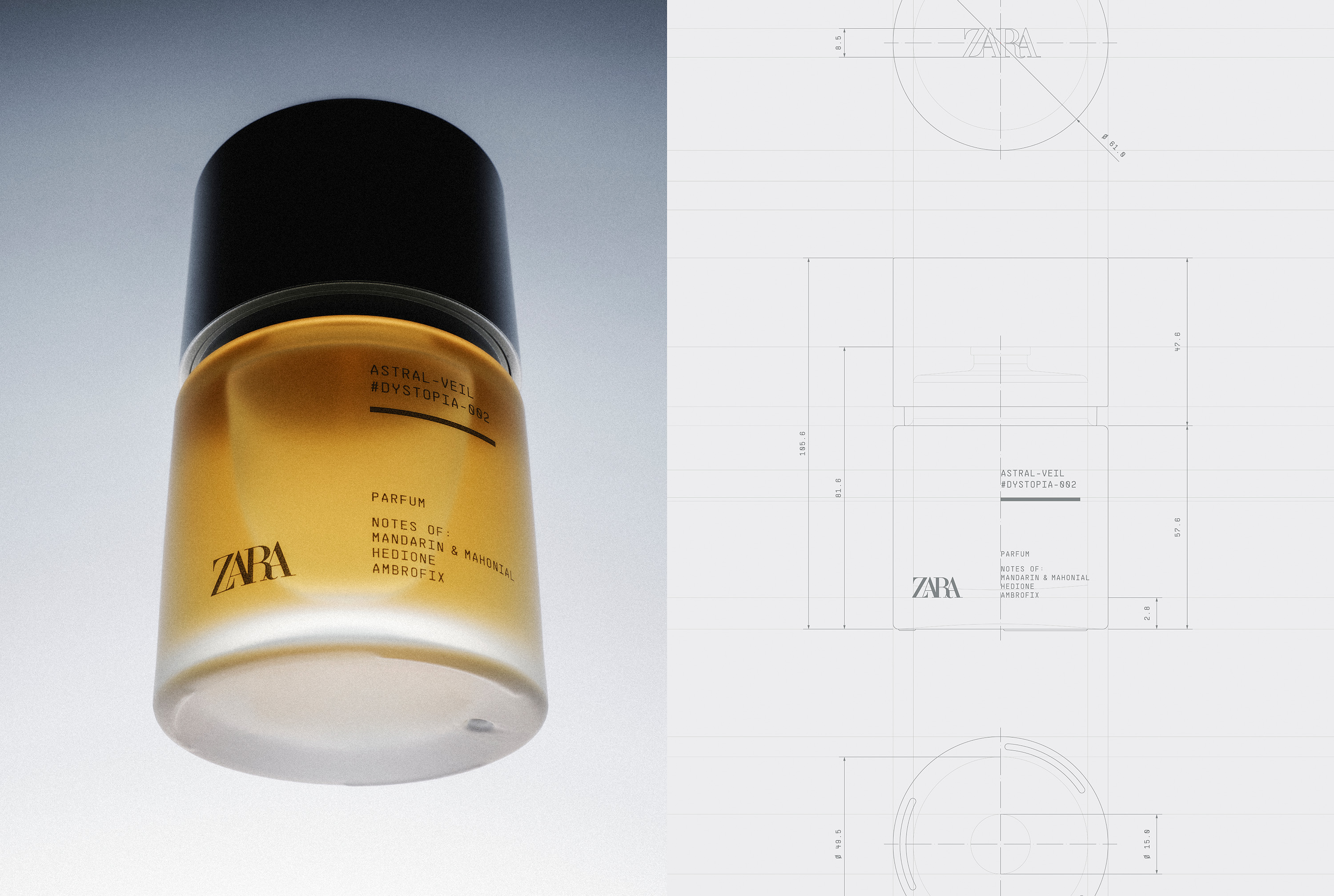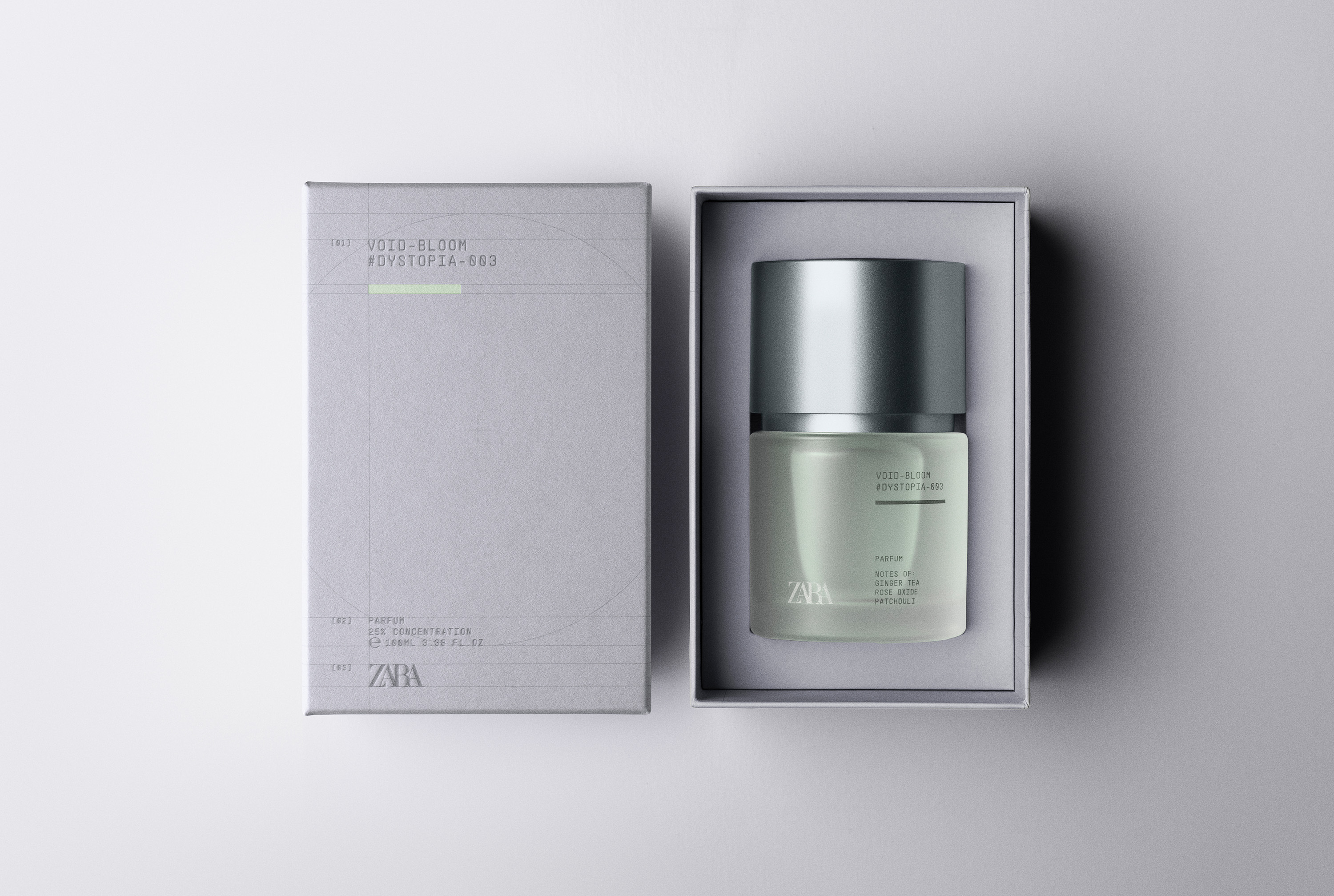 Zara commissioned us to design the packaging for the “Dystopia” perfume collection, covering both the bottle and the graphic identity of the range.